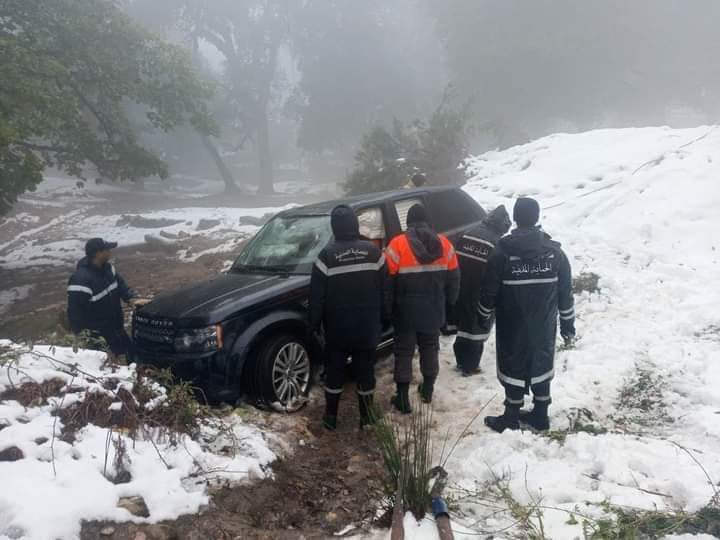عين دراهم: إعادة سيارة إلى مسارها بعد أن علقت بالثلوج