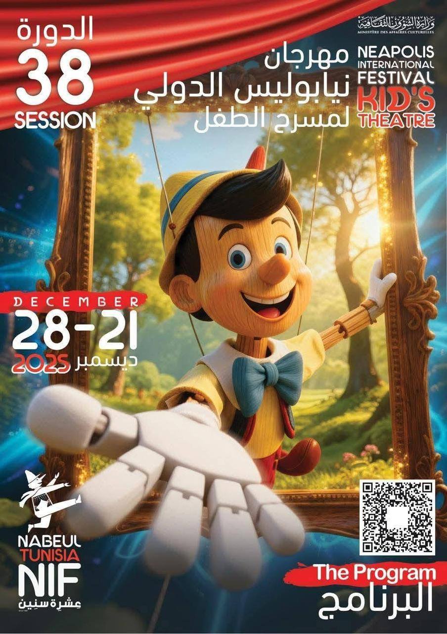 الدورة 38 لمهرجان نيابوليس الدولي لمسرح الطفل بنابل من 21 إلى 28 ديسمبر 2025
