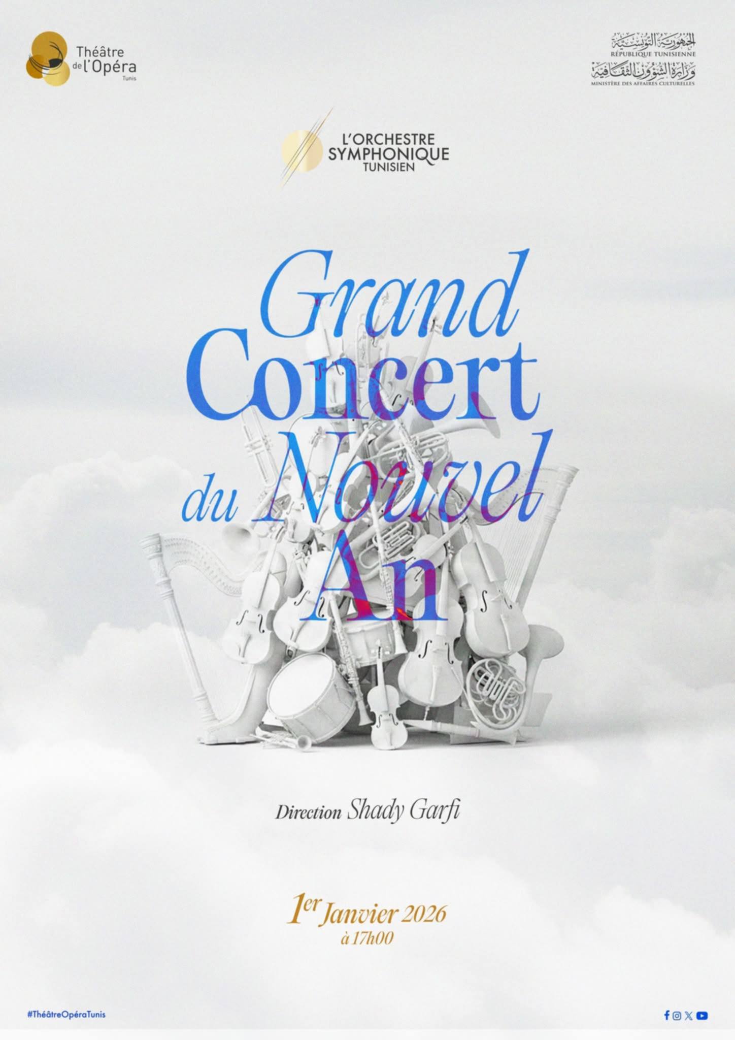 بمناسبة الاحتفال برأس السنة الادارية الجديدة، ينظم مسرح أوبرا تونس حفلا موسيقيا من تنفيذ الأوركستر السيمفوني التونسي بقيادة المايسترو شادي الڨرفي وذلك يوم1 جانفي2026 بقاعة الاوبرا بمدينة الثقافة الشاذلي القليبي .