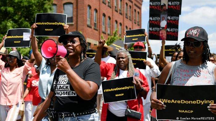 وبينما دعت السلطات إلى الهدوء، سار حشد نحو مقر بلديّة المدينة، رافعًا لافتات تُطالب بـ”العدالة لجايلاند”. وقُتل جايلاند ووكر (25 عامًا) في 27 جوان أثناء هروبه من الشرطة إثر ارتكابه مخالفة مروريّة. ويُظهر مقطع فيديو عنيف جدًا نشرته الشرطة الأحد، الشابّ وقد اخترق الرصاص جسده.