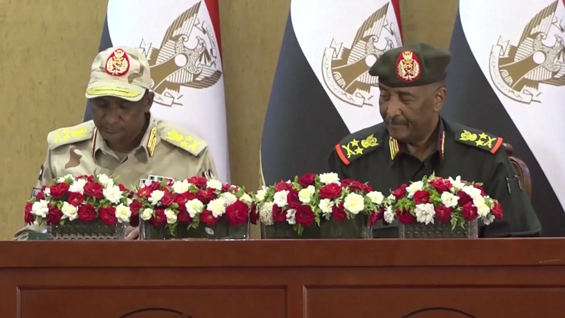 اشترط رئيس مجلس السيادة السوداني عبد الفتاح البرهان، مساء الأحد، إقرار وقف دائم لإطلاق النار في البلاد، وخروج قوات الدعم السريع من الخرطوم قبل لقاء قائدها محمد حمدان دقلو (حميدتي).