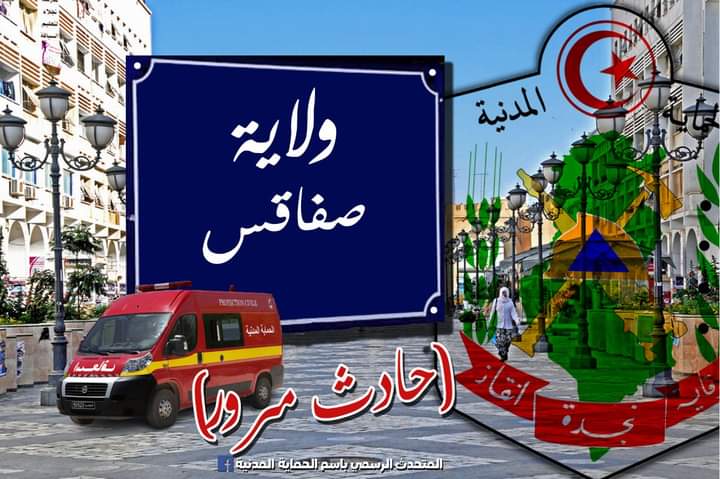 تولت فرق النجدة و الإنقاذ التابعة للإدارة الجهوية للحماية المدنية بصفاقس التدخل إثر حادث مستوى منطقة اولاد سعد من معتمدية بئر علي بن خليفة تمثل في إنزلاق سيارة أجرة لواج مما أسفر عن إصابة 09 ركاب بإصابات مختلفة ومتفاوتة الخطورة. وقد تم إسعافهم ونقلهم إلى المستشفى الجهوي بمعية الصحة العمومية.