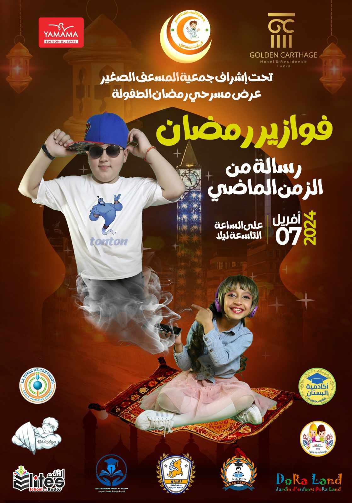 في بادرة مهمة أنتجت جمعية المسعف الصغير عرضا مسرحيا وهو الأول من نوعه في تونس والعالم العربي اذ يحمل رسالة من الزمن الماضي أبطالها أكثر من 350 طفل تونسي بعنوان ” فوازير رمضان رسالة من الزمن الماضي”
