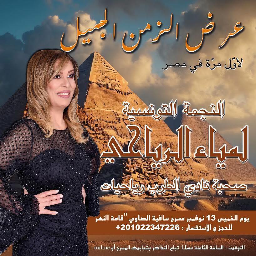 يُقدّم “نادي الطرب رياحيات” حفله الأول في مصر، يوم الأربعاء 13 نوفمبر 2025، على مسرح النهر بساقية الصاوي في العاصمة المصرية القاهرة، وذلك بقيادة الفنانة لمياء الرياحي.
