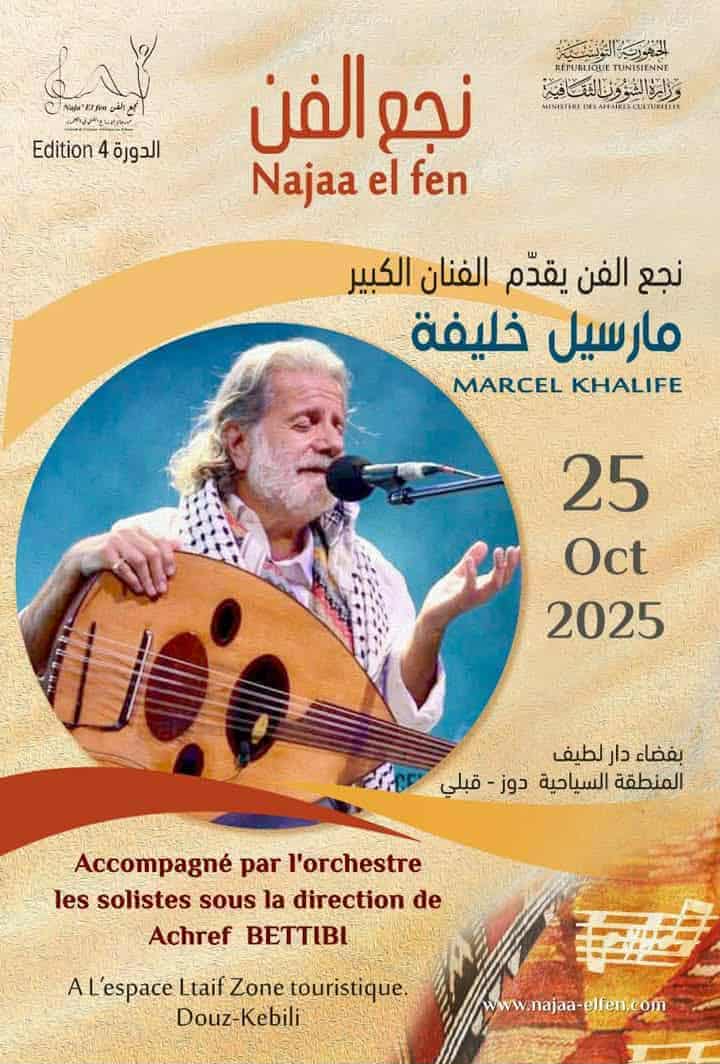 من 21 إلى 26 أكتوبر الجاري، تعود الصحراء التونسية لتتزيّن بألوان الفن والإبداع مع انطلاق الدورة الرابعة من مهرجان الإبداع الفني “نجع الفن”، التظاهرة التي أصبحت موعدًا سنويًا ينتظره عشّاق الجمال والتجريب الفني، حيث تلتقي الأصالة بالمعاصرة وتنبض الرمال بالحياة.