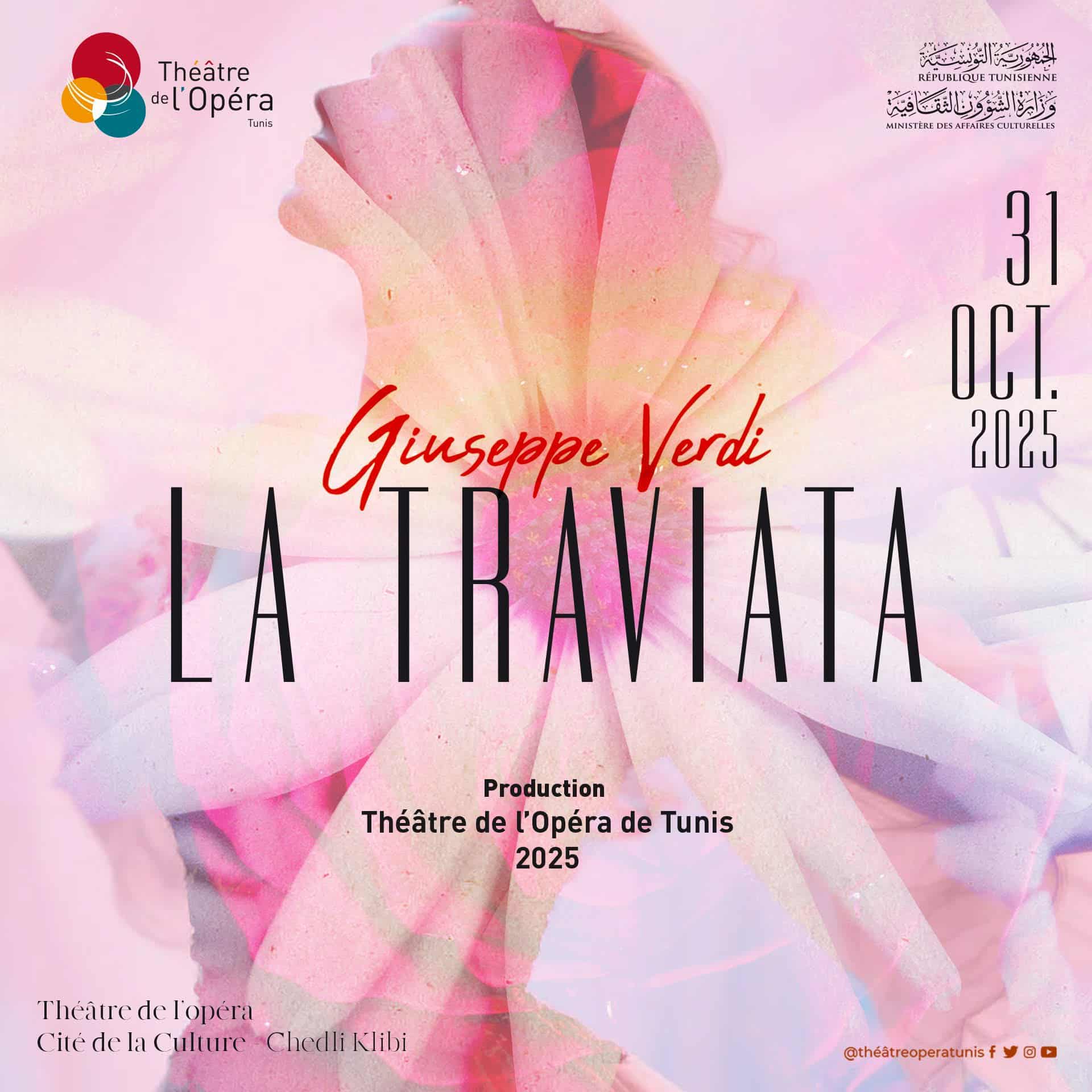 بدعم من وزارة الشؤون الثقافية، يقدم مسرح أوبرا تونس المسرحية الغنائية الجديدة “لا ترافياتا” وذلك يوم الجمعة 31 أكتوبر 2025 على الساعة 19:30 في قاعة الأوبرا، بمدينة الثقافة الشاذلي القليبي.