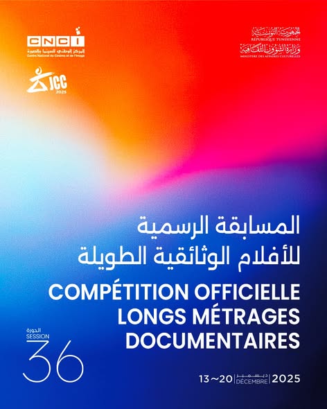 أعلنت الدورة السادسة والثلاثون لأيام قرطاج السينمائية عن القائمة الرسمية للأفلام الوثائقية الطويلة المشاركة في منافسات هذا العام، وذلك قبل انطلاق المهرجان المزمع تنظيمه من 13 إلى 20 ديسمبر 2025.