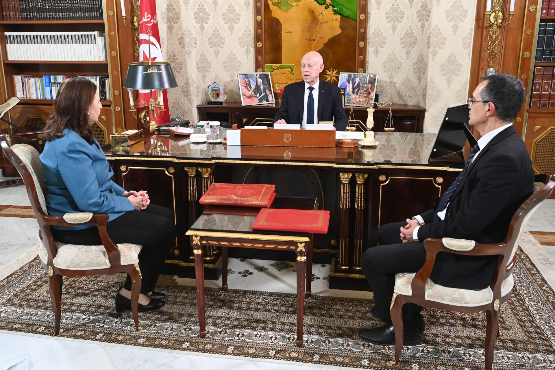 اجتمع رئيس الجمهورية قيس سعيّد أمس، 15 ديسمبر الجاري بقصر قرطاج، بسارة الزعفراني الزنزري رئيسة الحكومة عزالدين بالشيخ وزير الفلاحة والموارد المائية والصّيد البحري.