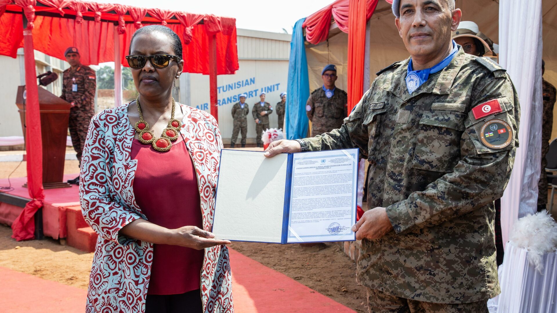 أسندت ميدالية الأمم المتحدة لوحدة النقل الجوي التونسية التابعة لبعثة الأمم المتحدة المتكاملة ومتعددة الأبعاد لتحقيق الاستقرار بجمهورية إفريقيا الوسطى، وذلك تقديرا لالتزامها بالحفاظ على السلام في إفريقيا الوسطى.