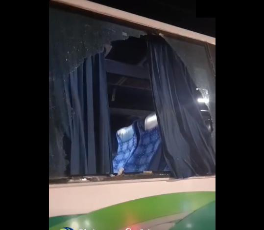 وقد تسبب ذلك في تهشيم البلّور ولم يسفر عن أي أضرار في صفوف المسافرين و السائق.