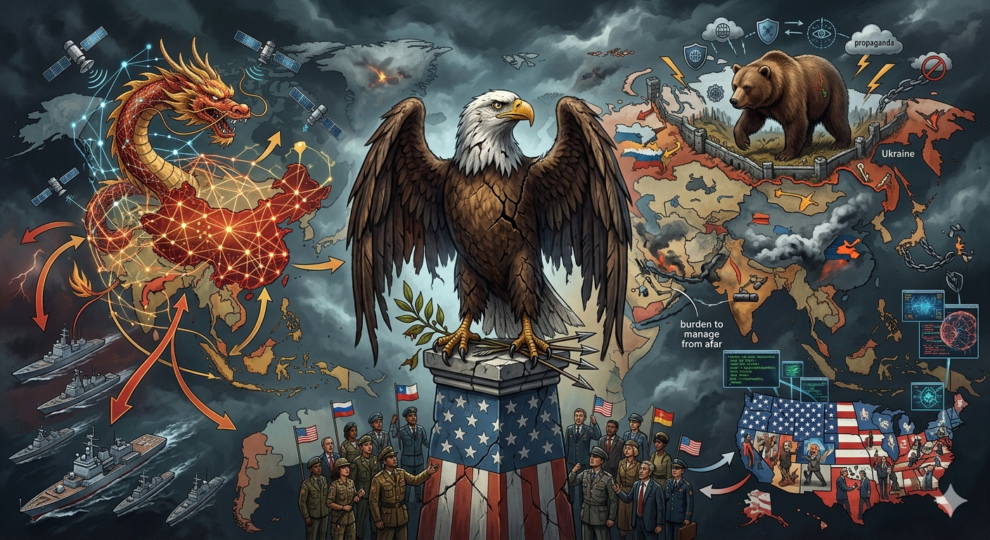 في هذا السياق تصبح الحرب مفهوما مختلفا تماما. لم تعد اعلانا رسميا ولا مواجهة شاملة بل حالة دائمة منخفضة الحدة متعددة الادوات. العقوبات والضغوط الاقتصادية والحروب السيبرانية وحروب المعلومات والدعم غير المباشر للوكلاء كلها تتحول الى بدائل عن المواجهة المباشرة. هذا التحول لا يعكس تطورا اخلاقيا في التفكير العسكري بل اعترافا ضمنيا بالخوف من كلفة الحرب الكبرى. الولايات المتحدة تعرف ان اي مواجهة مباشرة مع قوة كبرى قد تكون بداية لنهاية النظام الذي صاغته بعد الحرب العالمية الثانية.