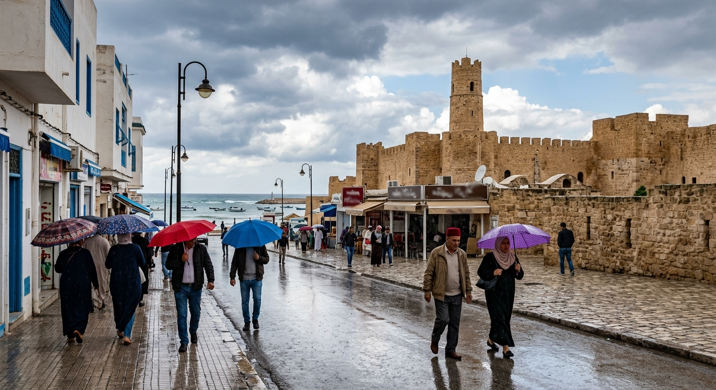 وتكون الأجواء عامة قليلة السحب إلى مغيمة جزئيا مع فترات مشمسة بأغلب الجهات، خاصة بالمناطق الوسطى والجنوبية، في حين تتكاثف السحب أحيانا بالمناطق الشرقية للوسط والجنوب مع إمكانية نزول أمطار متفرقة.