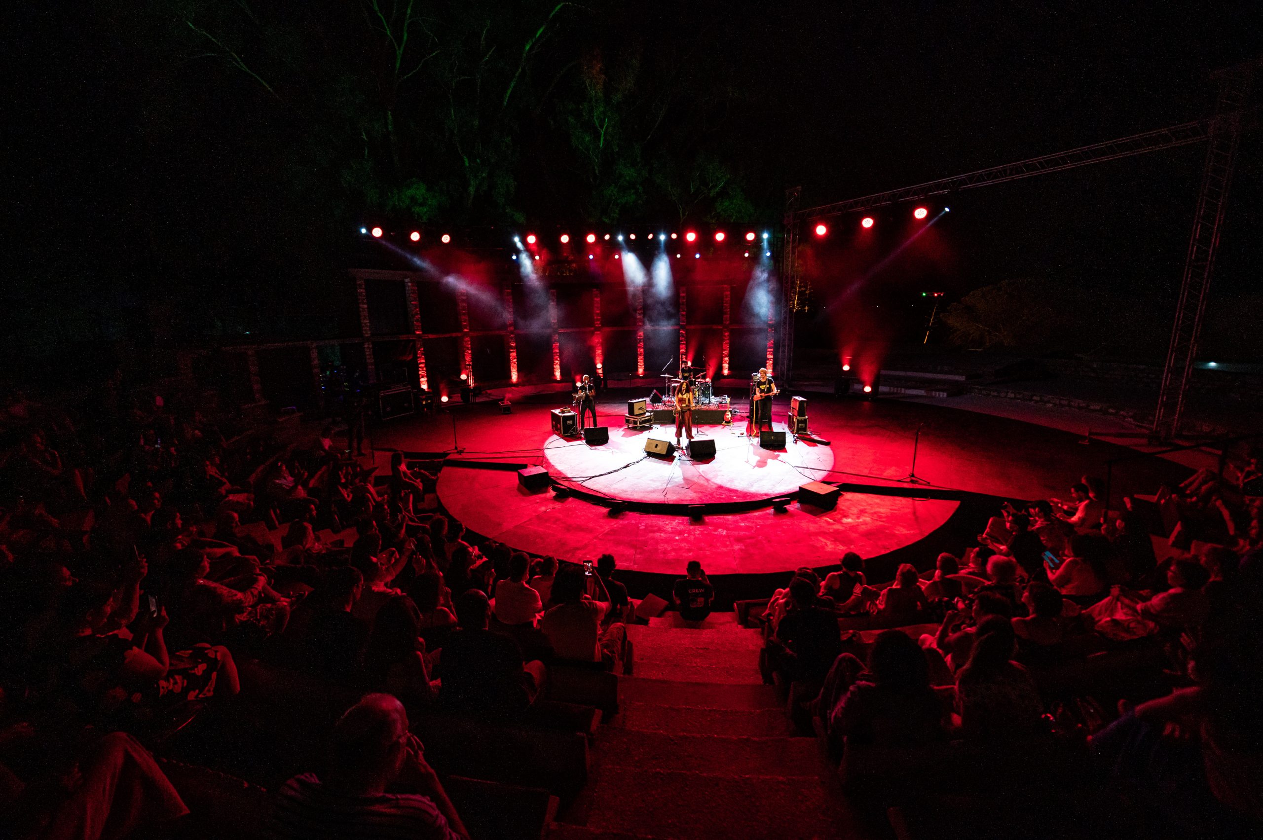 انطلق العرض بأداء مغنية مفعمة بالنشاط أضفت حيوية وحركية على الركح رفقة عازفين يتقدون طاقة. “إلى متى.،القمرة مضوية ليلي…” وغيرها من أغاني ألبوم “نايضة” نالت إعجاب الجمهور الحاضر الذي تفاعل مع كل أغنية ورقص وصفق منتشيا و مستمتعا بهذا المزج الرّائع بين آلتي القمبري والعويشة والفلوت وبقية الآلات الإيقاعية  بمرافقة الصوت الشجي والرقص الرشيق ليسرا منصور التي عزفت ورقصت وملأت الفضاء أهازيج وزغاريد امتزجت مع ألوان الإضاءة المتغيرة التي أضفت رونقا خاصا على العرض.