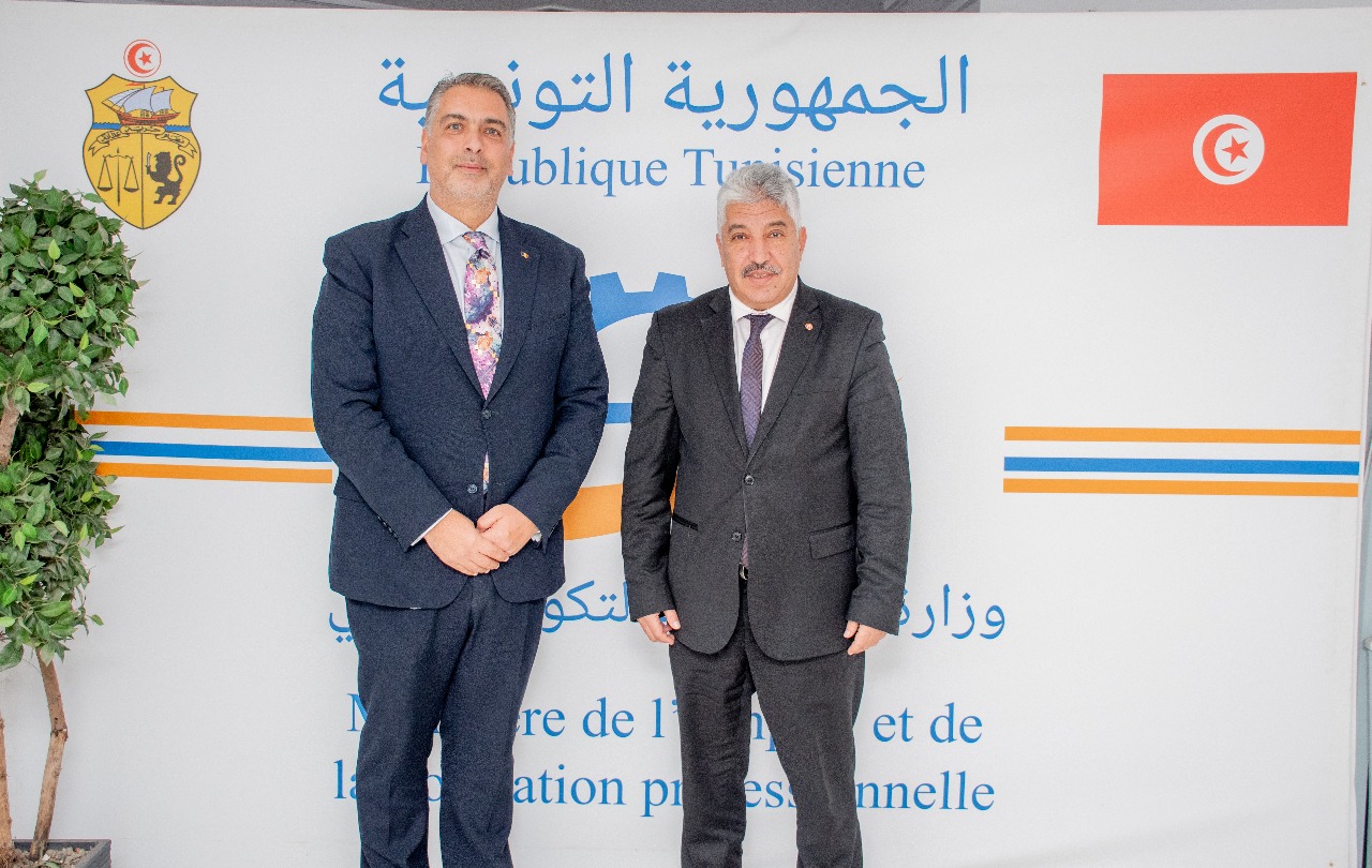 On Tuesday, January 21, 2025, Tunisia’s Minister of Employment and Vocational Training, Riadh Chaouad, met with Romanian Ambassador to Tunisia, Valentin Ciprian, accompanied by Embassy Counselor Constantin, at the ministry headquarters.
