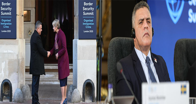 At the invitation of UK Home Secretary Yvette Cooper, Interior Minister Khaled Nouri visited London with senior officials to attend the Border Security Summit on March 31–April 1, 2025. The event brought together delegations from 46 countries, including 37 ministers, international organizations, and social media platforms to discuss strategies against irregular migration and transnational crime.