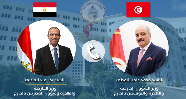 The Minister of Foreign Affairs, Migration, and Tunisians Abroad, Mohamed Ali Nafti, had a phone conversation on Monday with his Egyptian counterpart, Badr Abdel Ati.