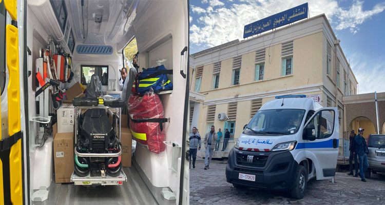 The vehicles were distributed to Moulares, Belkhir, Om Laarayes, Metlaoui, and the regional emergency medical assistance unit in Gafsa, which received two ambulances (Class A and B).