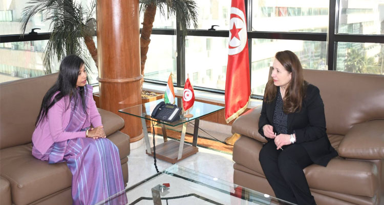 Tunisia’s Minister of Industry, Mines and Energy, Fatma Thabet Chiboub, met on Friday, February 6, with India’s Ambassador to Tunisia, Devyani Uttam Khobragade, to discuss strengthening bilateral investment and cooperation.