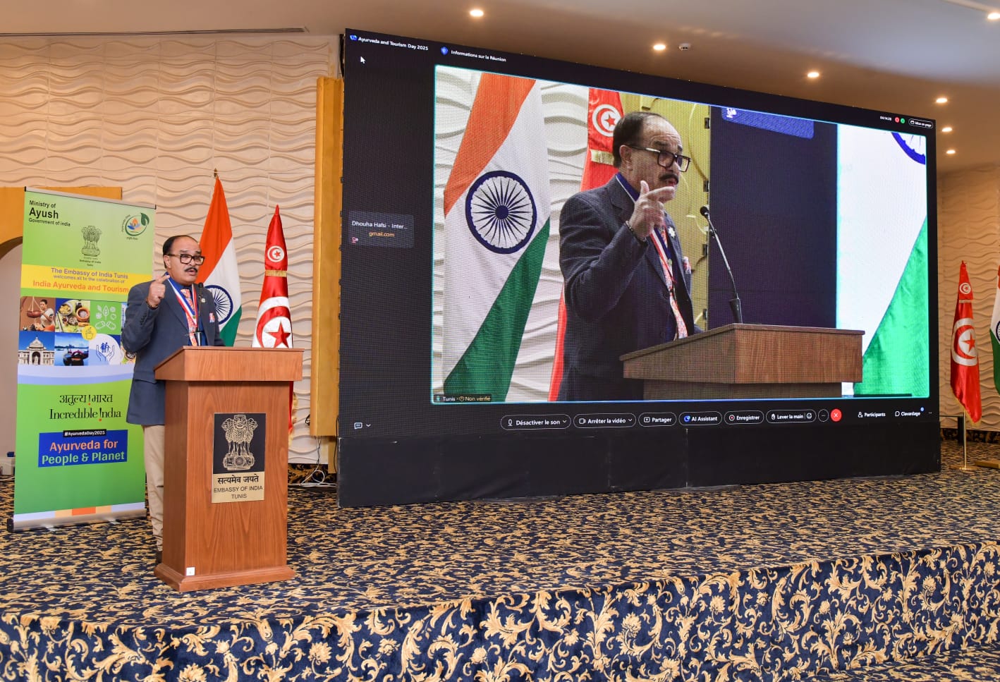 L’Ambassade de l’Inde à Tunis a organisé un webinaire B2B pour célébrer la Journée de l’Ayurveda et du Tourisme International 2025 le 23 septembre 2025 à l’hôtel Verdi, Gammarth, Tunis, en association avec le Ministère de l’Ayurveda, du Yoga et de la Naturopathie, de l’Unani, du Siddha et de l’Homéopathie (AYUSH), le Gouvernement indien, la Fédération des associations indiennes du tourisme et de l’hôtellerie (FAITH), Sitaram Retreat Thrissur, le Groupe Somatheeram Ayurveda, la Chambre de Commerce et d’Industrie de Bizerte, la Fédération Tunisienne des Agences de Voyages et de Tourisme (FTAV), la Fédération Tunisienne du Tourisme (FI2T), One Resort Hotels, la Chambre Nationale Tunisienne des Sociétés de Services de Santé, le Groupe SMEDI et l’International Holistic Academy. Satguru Travel Tunisia, Active Travel et Vision Voyages ont co-parrainé cet événement important.