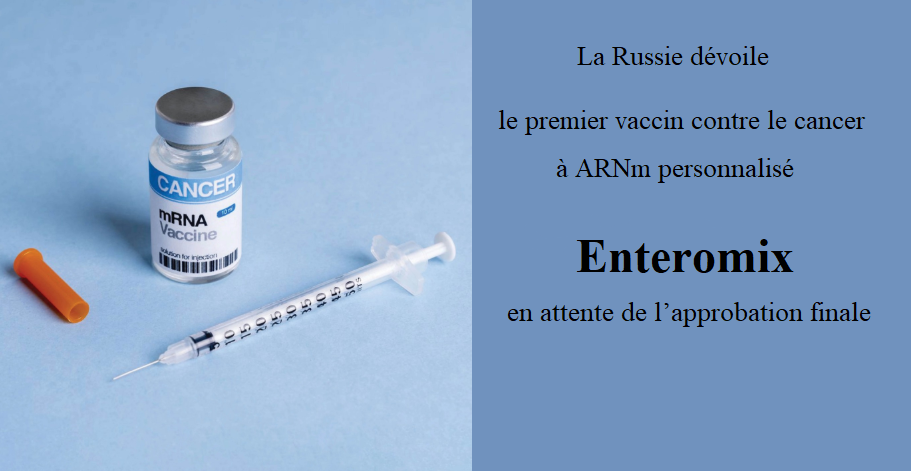 L’oncologue en chef du ministère russe de la Santé, Andrey Kaprin, a rapporté que le vaccin antitumoral russe Enteromix est actuellement soumis à la première phase d’essais cliniques, ajoutant que les médecins travaillent à ce stade pour déterminer la dose optimale et évaluer la tolérance du corps au vaccin.